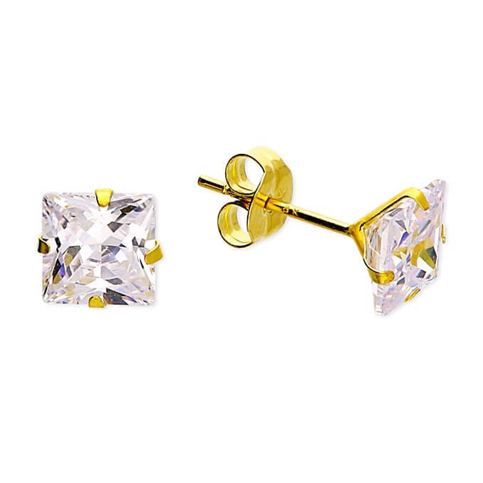9K yellow Gold Oval Cubic Zirconia Stud Earrings