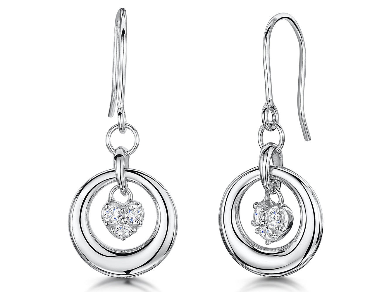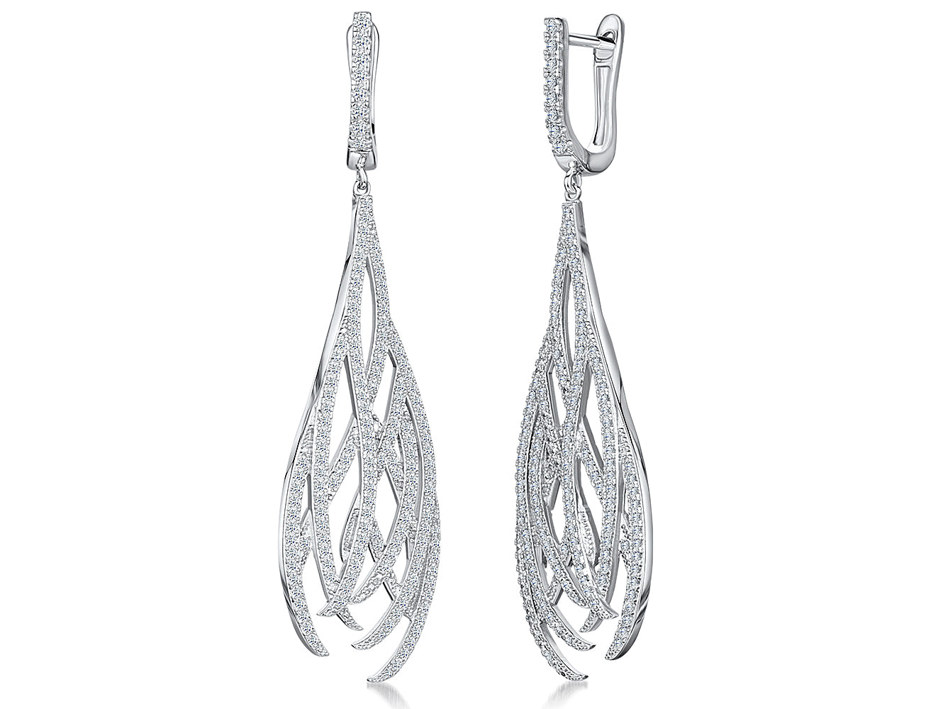 Sterling Silver Encrusted Triangles Cubic Zirconia Drop Earrings