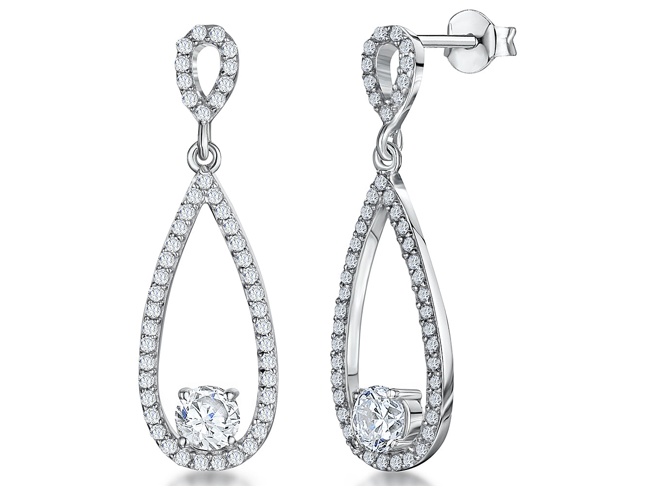 Sterling Silver Half Carat Single Stone Teardrop Earrings
