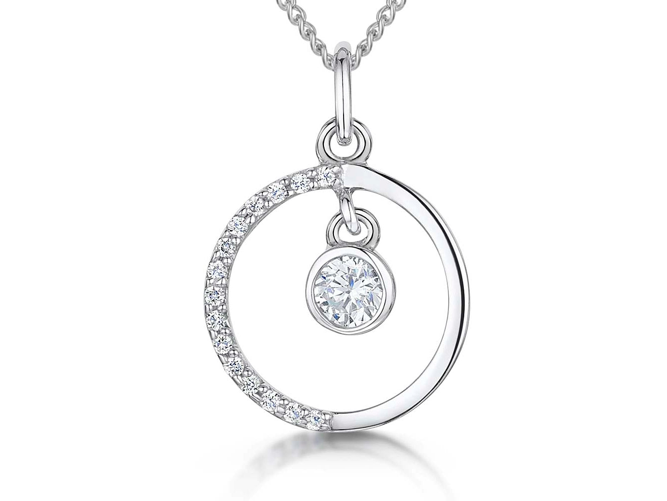 Sterling Silver Floating Cubic Zirconia Half Pave Circle Pendant