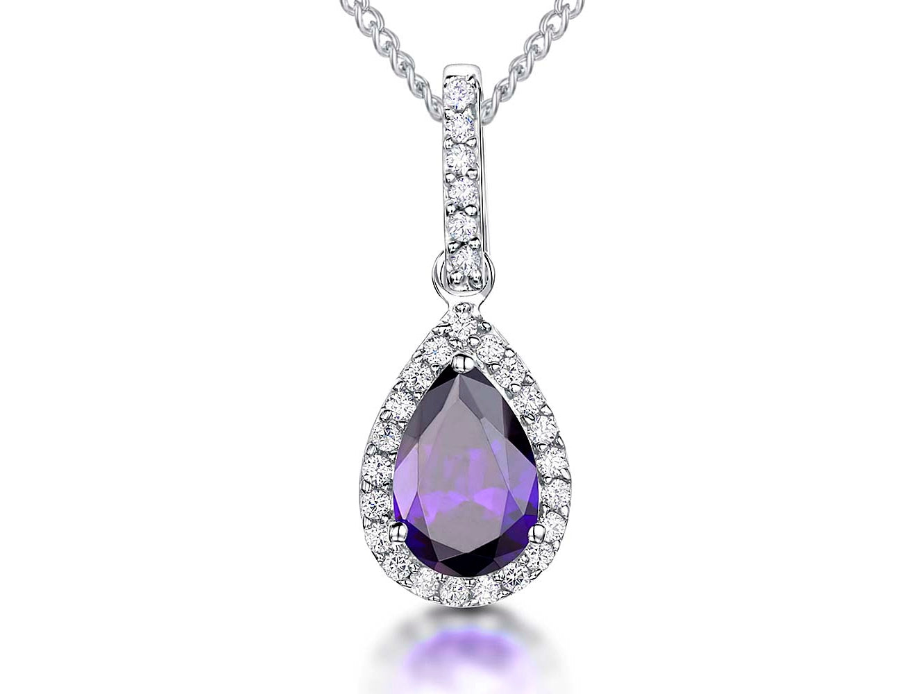 Sterling Silver Amethyst Zirconia Teardrop Pendant