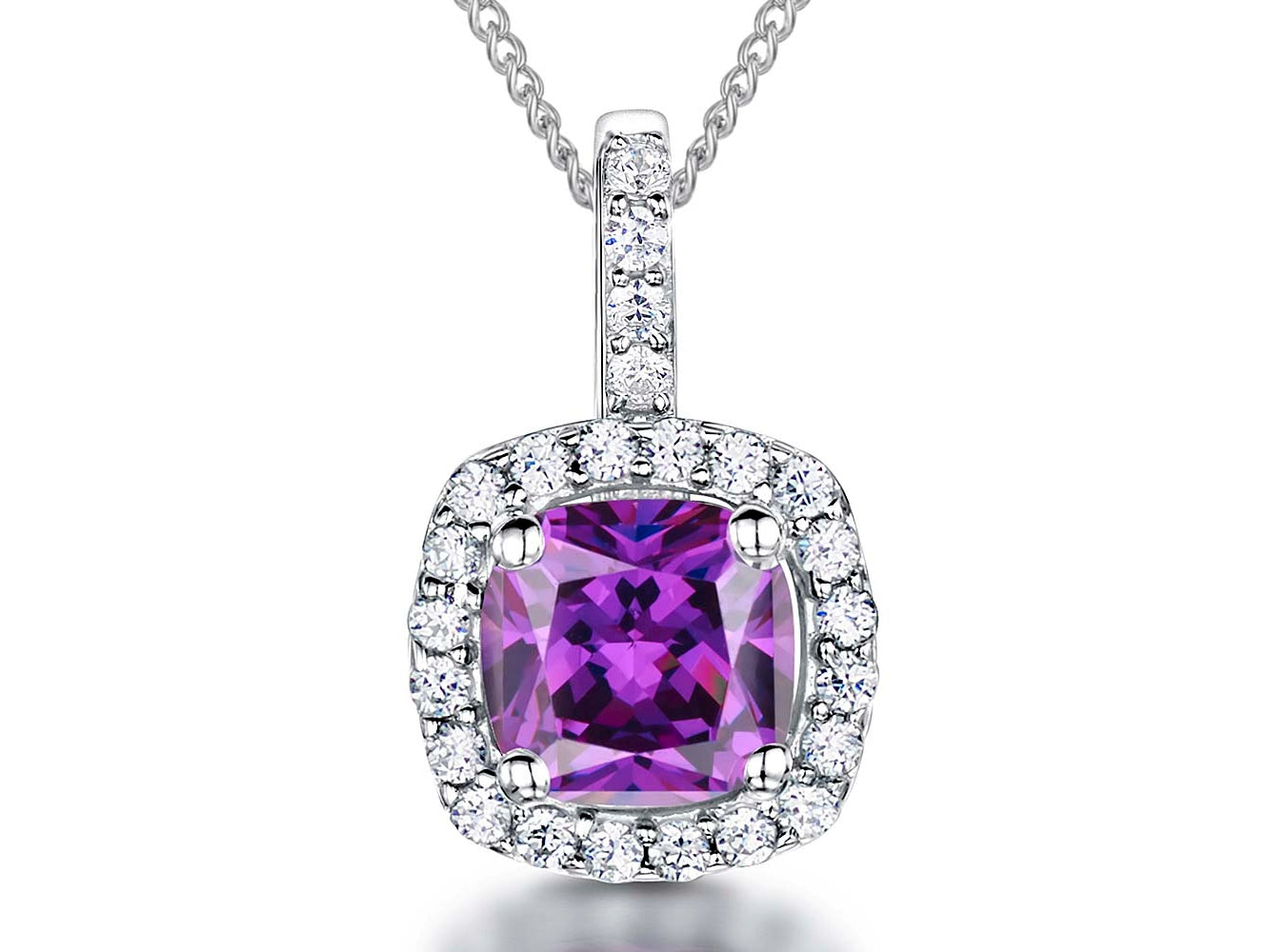 Sterling Silver Amethyst Zirconia Halo Necklace