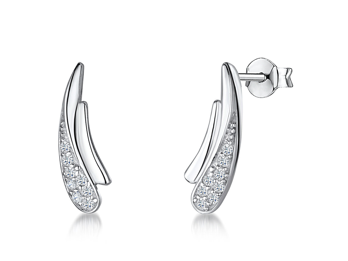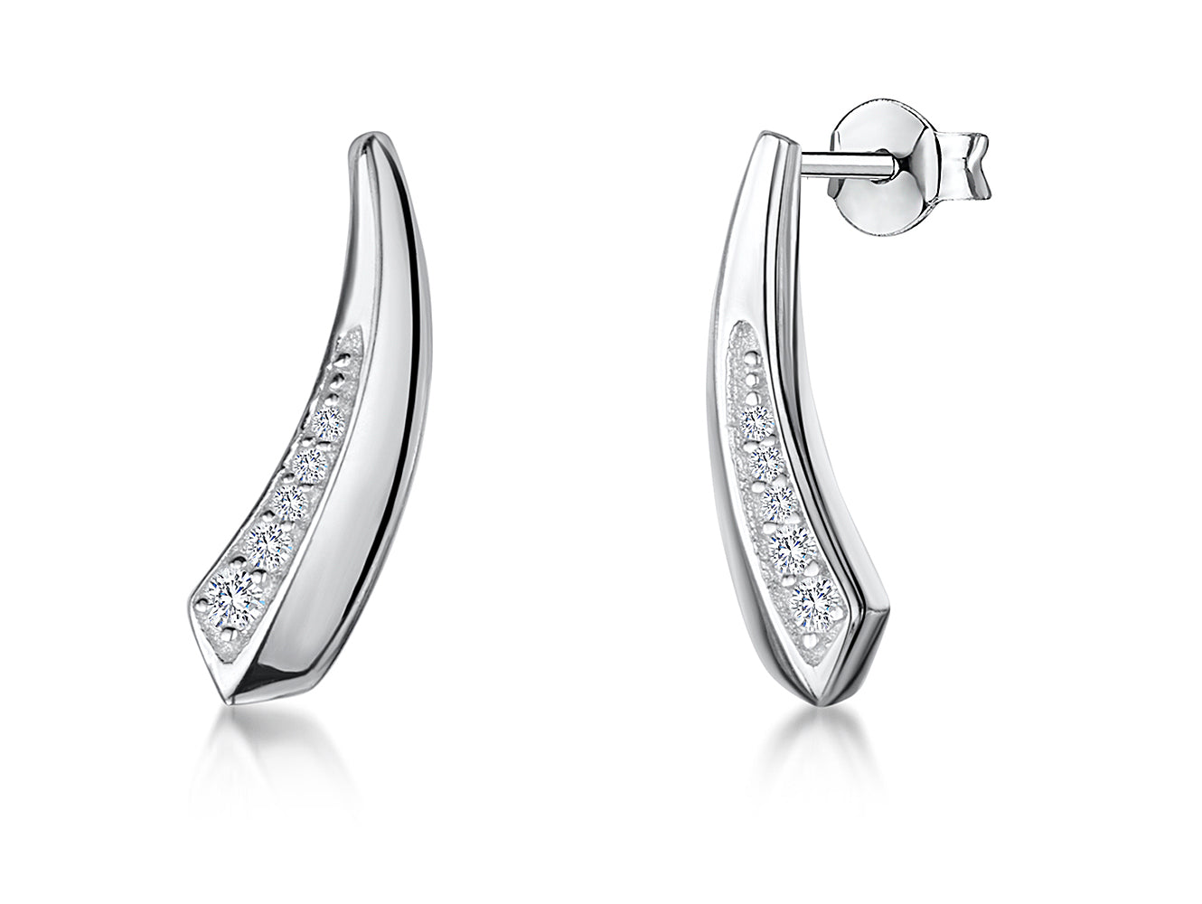 Sterling Silver and Cubic Zirconia Inward Curved Stud Earring