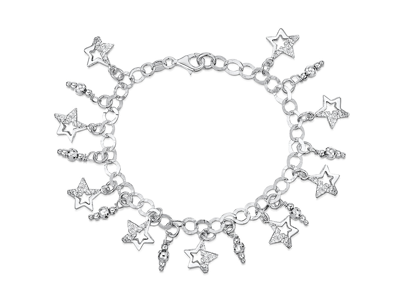 Sterling Silver And Cubic Zirconia Charm Style Bracelet With Dangly Stars
