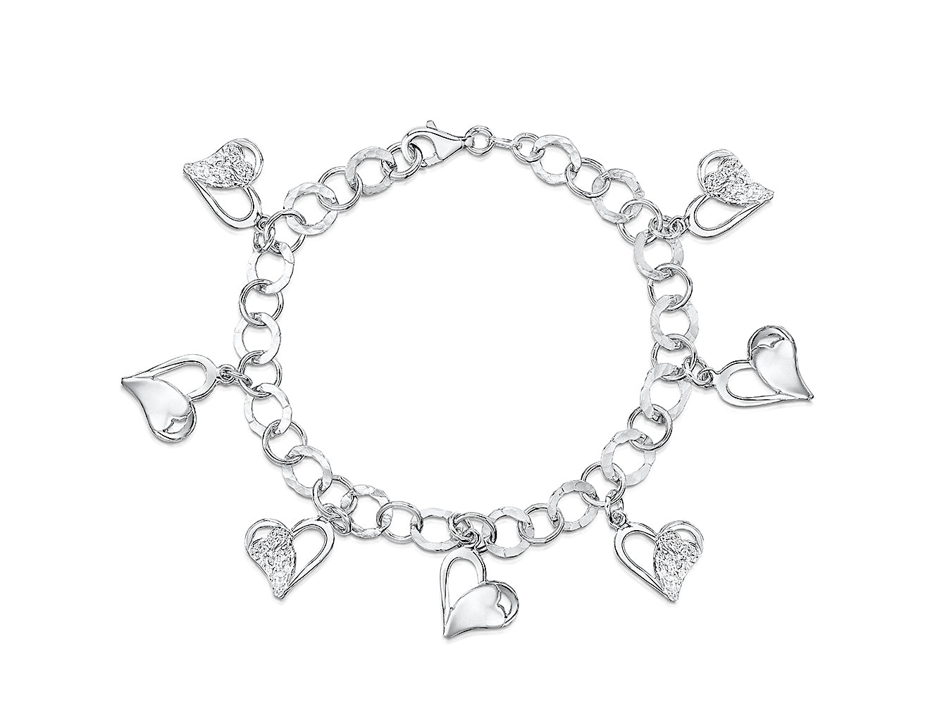 Sterling Silver and Cubic Zirconia Charm Bracelet With Dangly Hearts