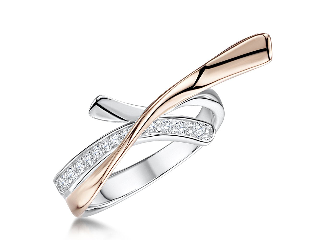 Rose Gold Twisted Ring Set With Cubic Zirconia Stones