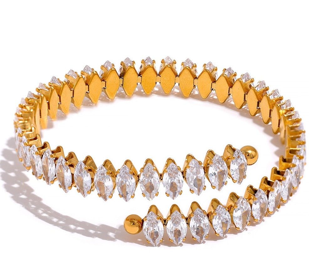 Cubic Zirconia Stainless Steel Open Adjustable Bracelet
