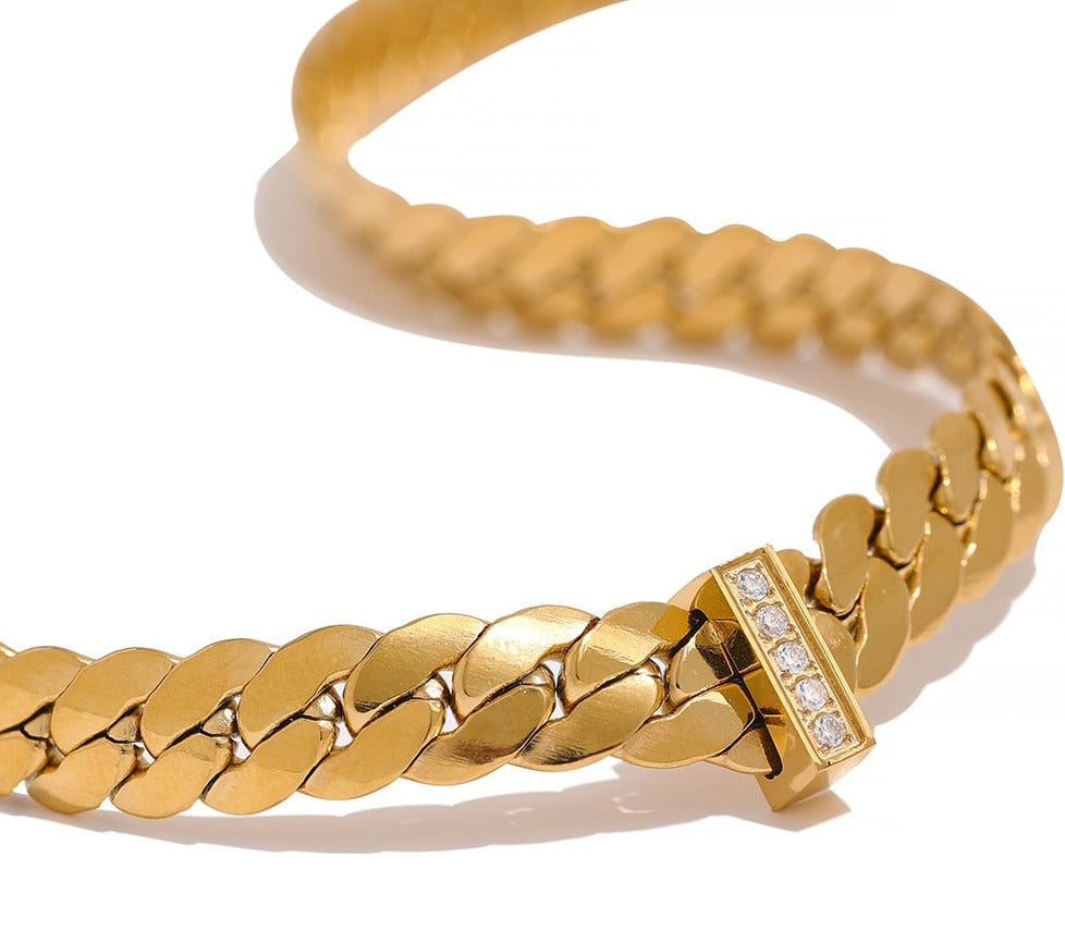 Cuban Chain Stainless Steel Necklace Collar Zircon