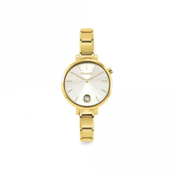 Time Round Silver Glitter Dial & Gold Charm Bracelet Watch with CZ