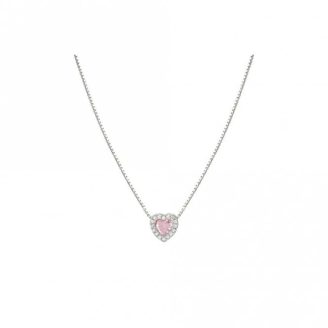 All My Love Silver & Pink CZ Heart Pendant Necklace