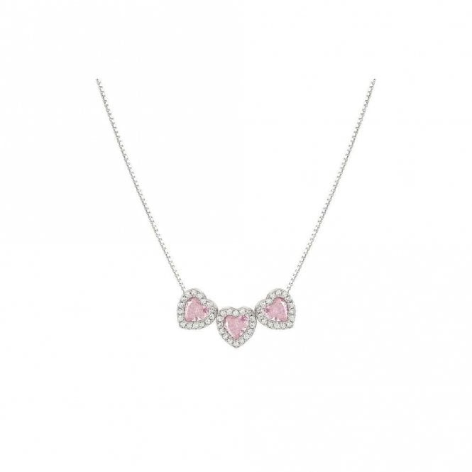 All My Love Silver & Triple Pink CZ Heart Pendant Necklace
