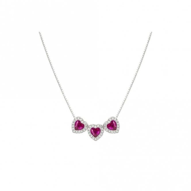 All My Love Silver & Triple Red CZ Heart Pendant Necklace