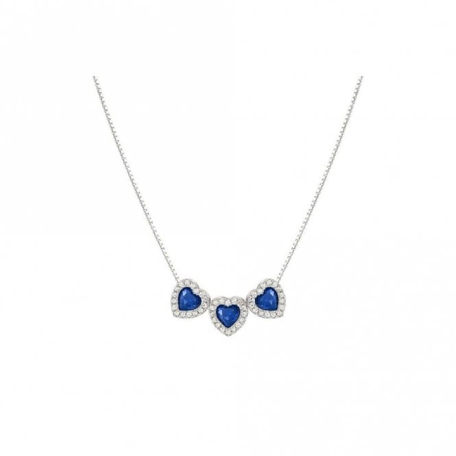 All My Love Silver & Triple Blue CZ Heart Pendant Necklace