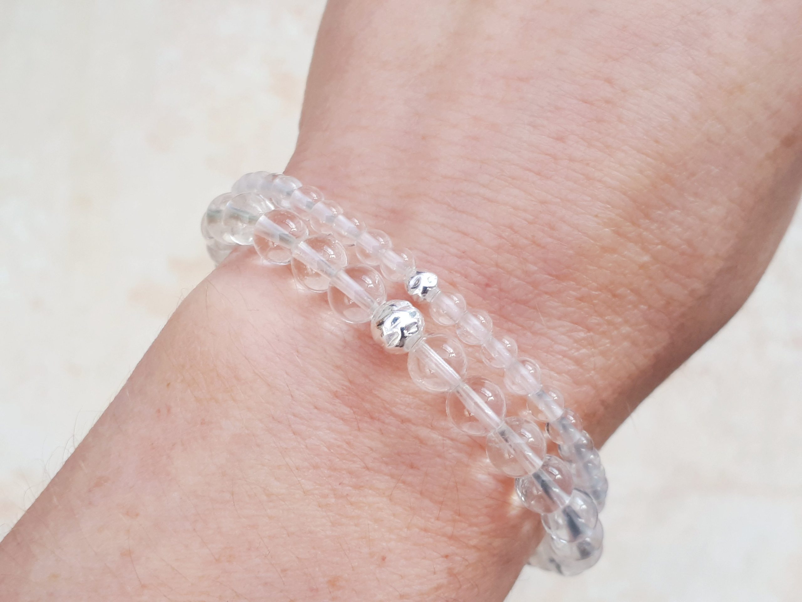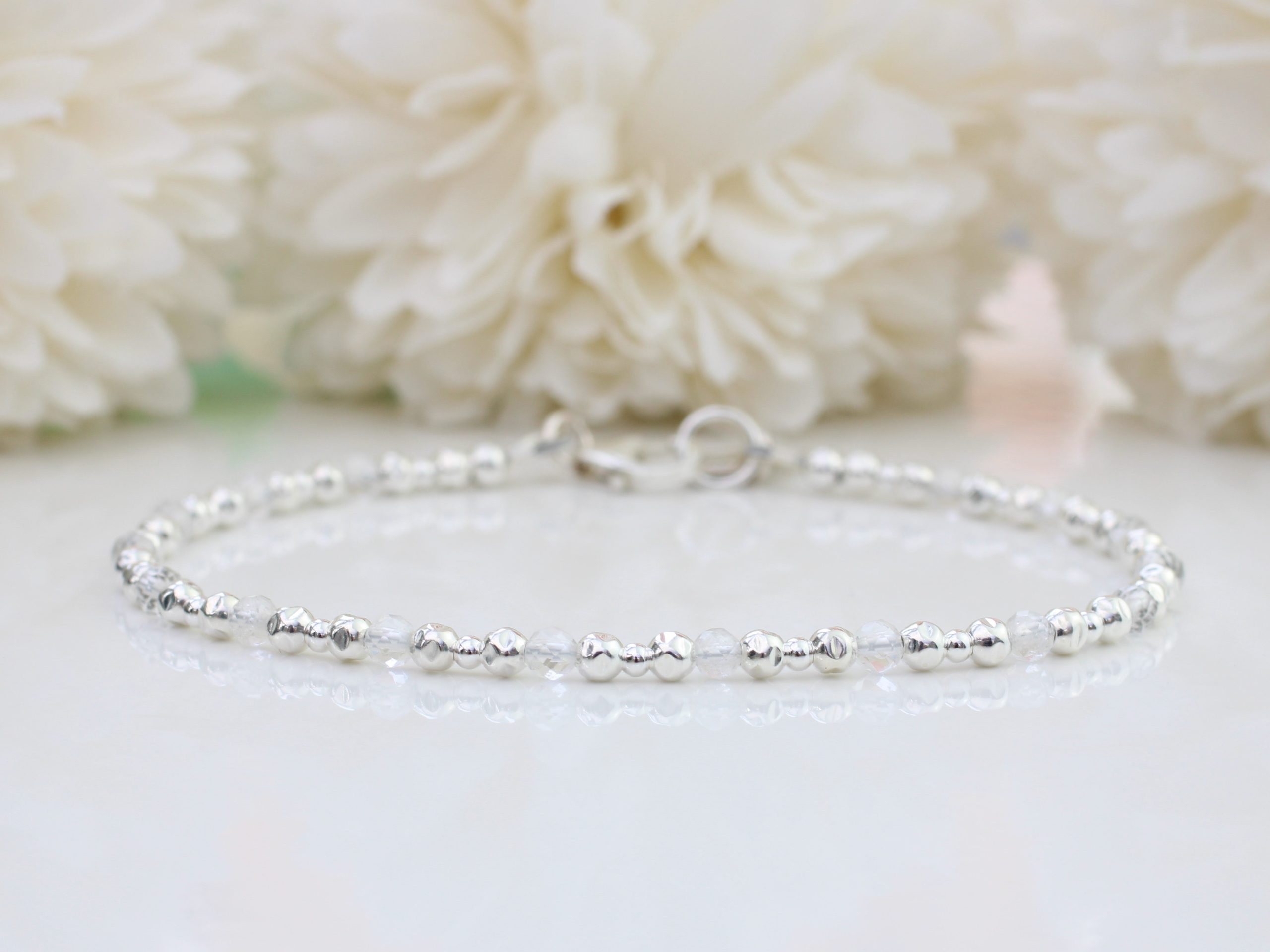 Crystal quartz bead bracelet. April birthstone bracelet.