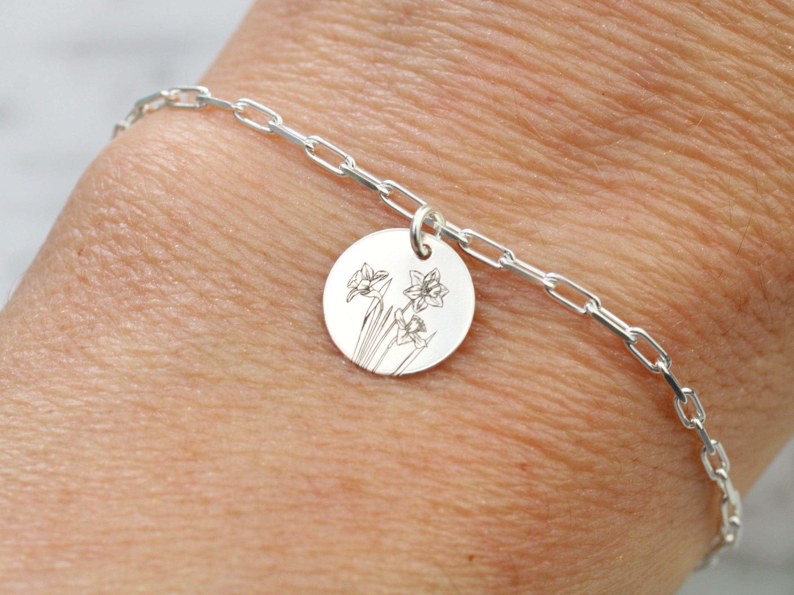 Daffodil adjustable bracelet. March birth flower.