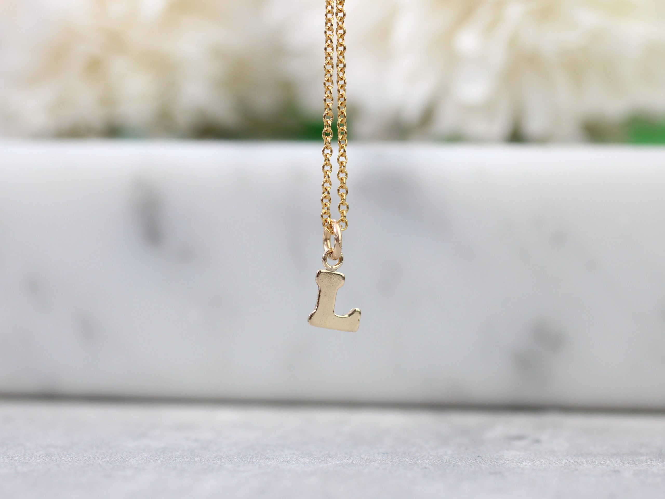 Dainty gold initial necklace.