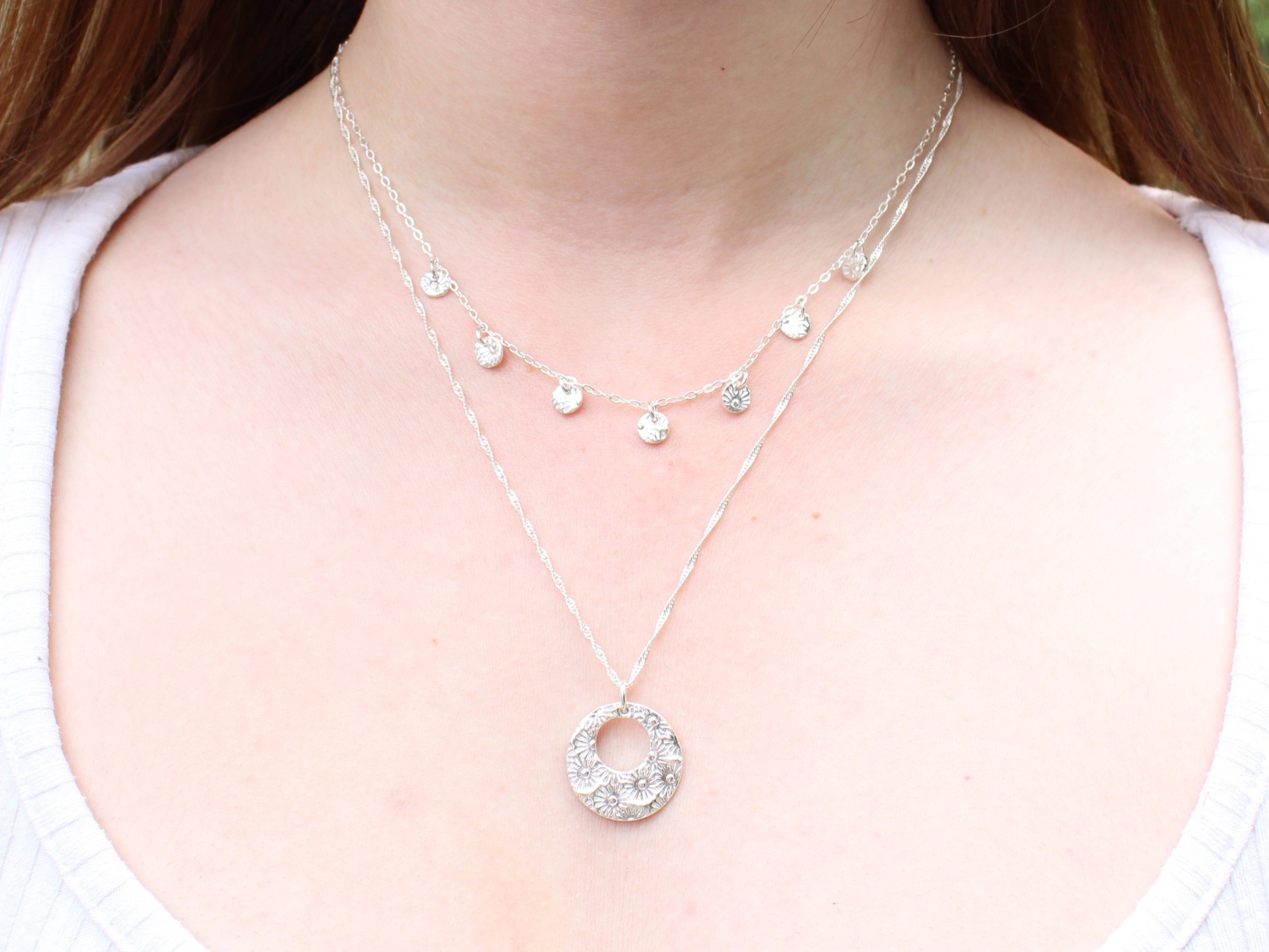 Daisy chain layering necklaces.