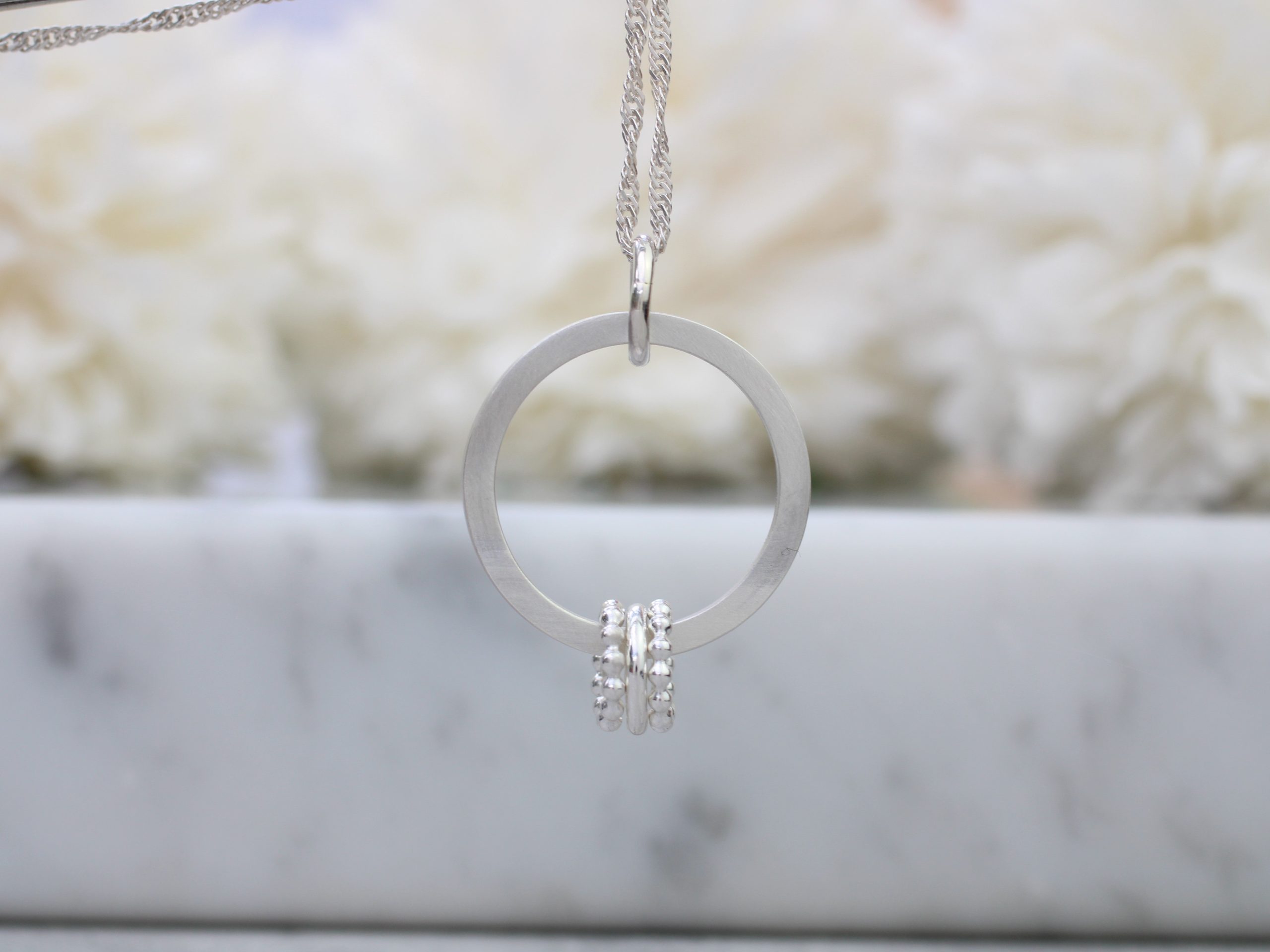 30th birthday necklace with 3 rings.