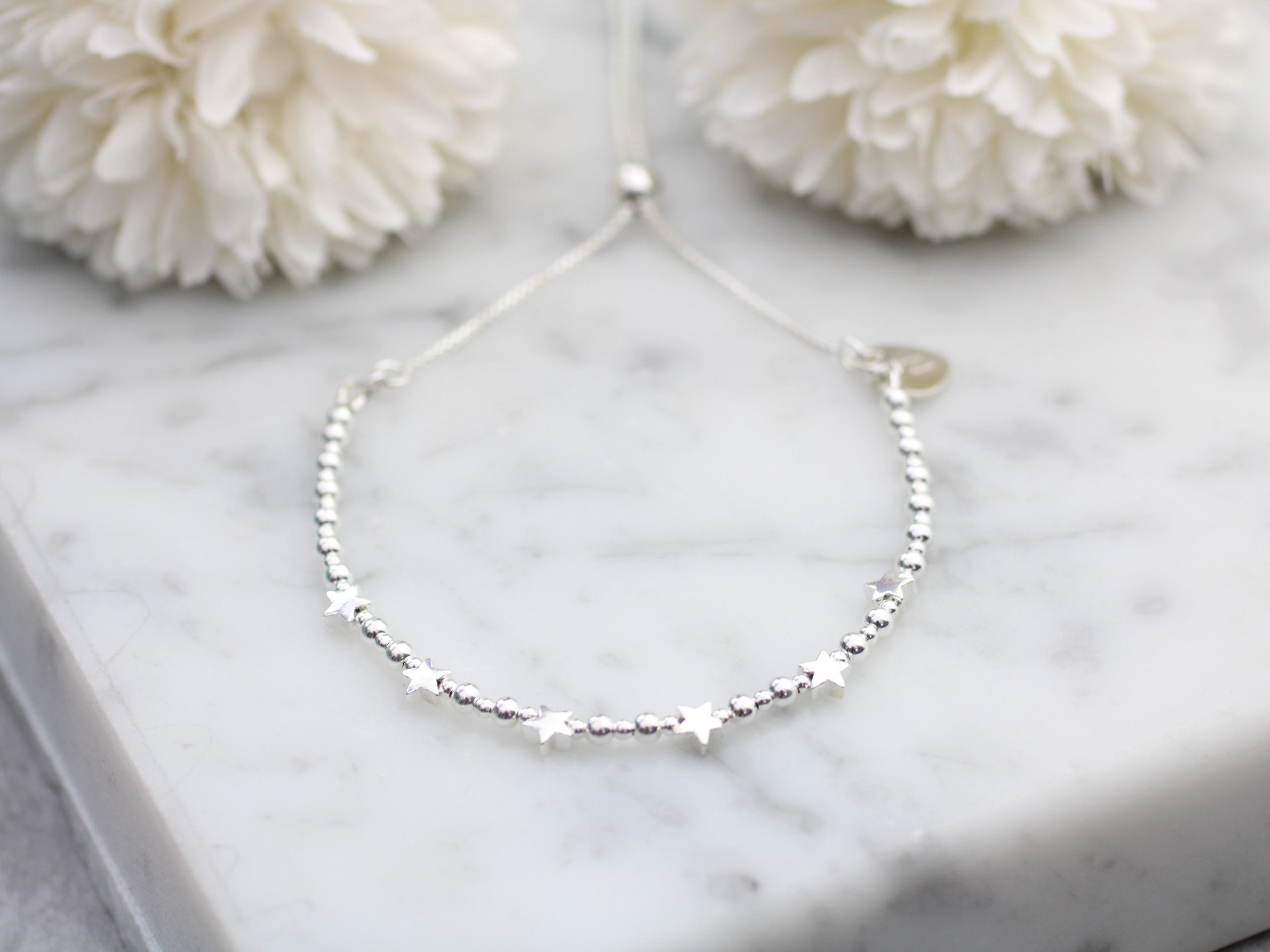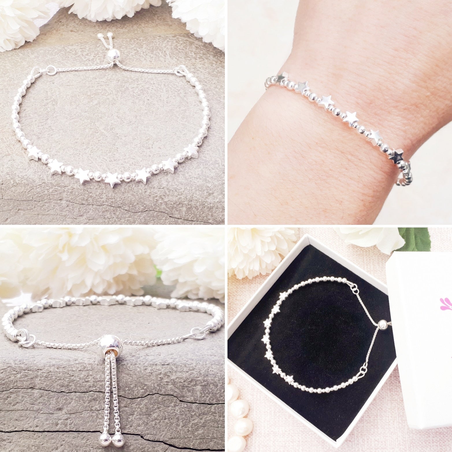 60th birthday bracelet. 60th birthday gift. Sterling silver star bracelet with slider clasp.