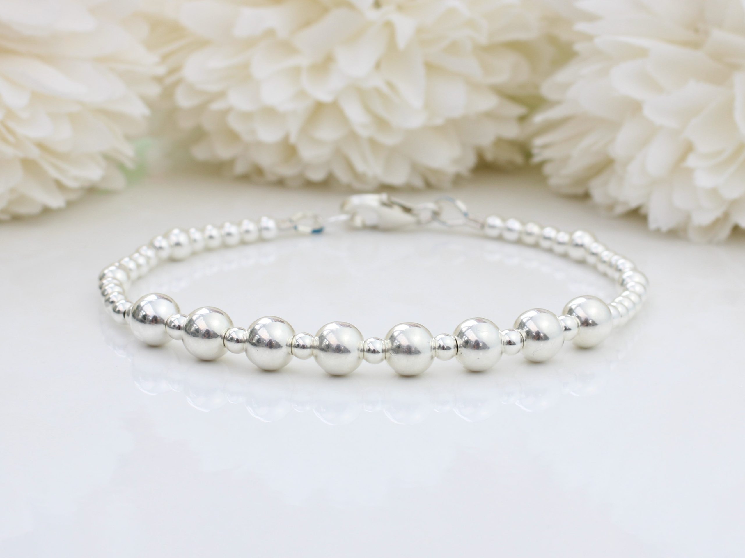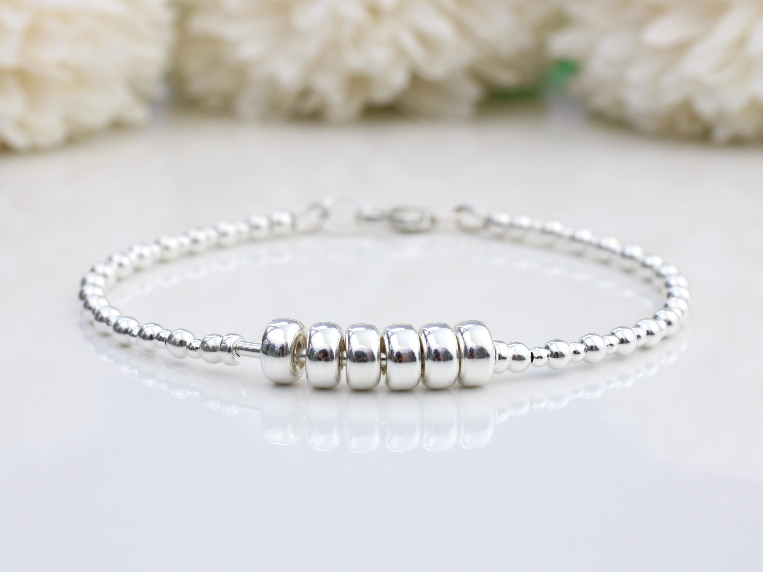 60th birthday bracelet. 60th birthday gift. Sterling silver bead bracelet.