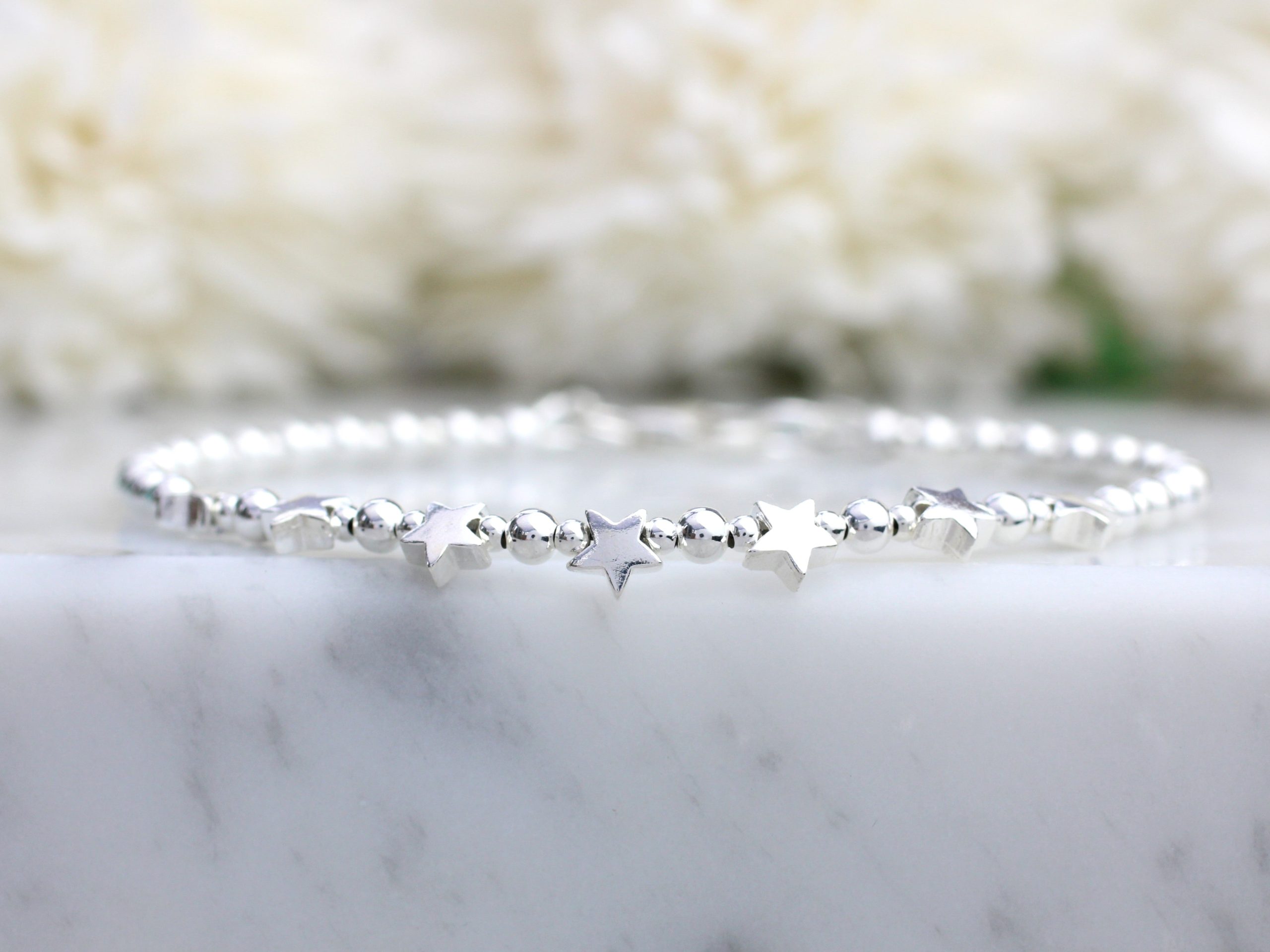 70th birthday bracelet. 70th birthday gift. Sterling silver star bracelet with slider clasp.