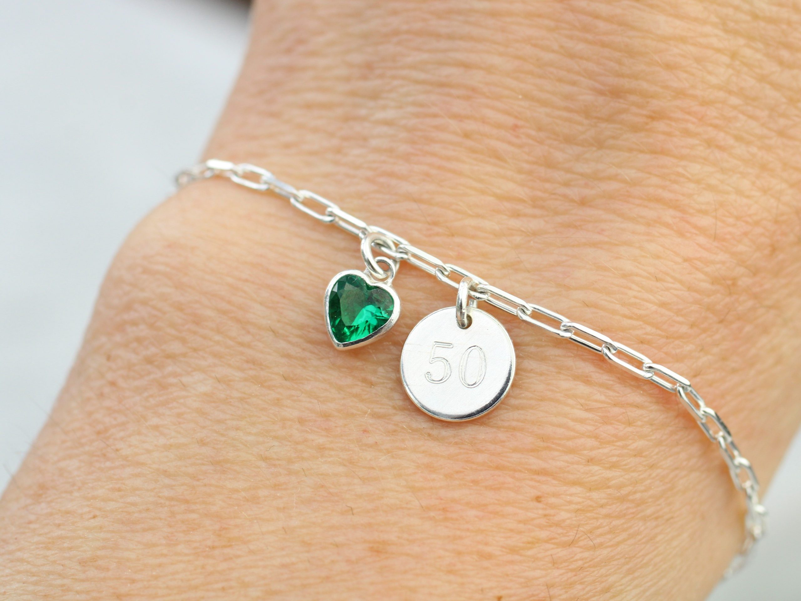 Personalised milestone birthday bracelet for 13th, 16th, 18th, 21st, 30th, 40th, 50th, 60th, 70th.