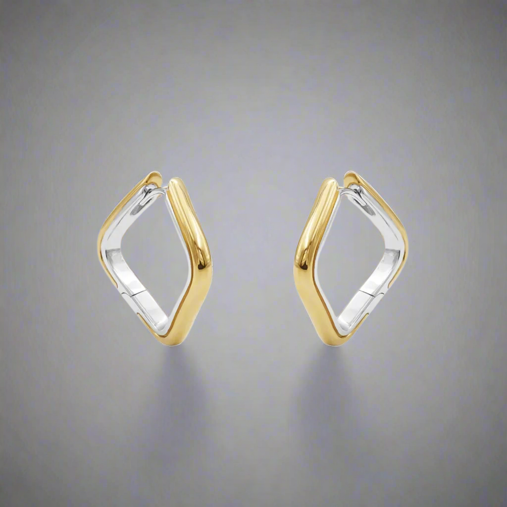 Frankie Sterling Silver Mixed Metal Irregular Square Hoop Earrings | Gold