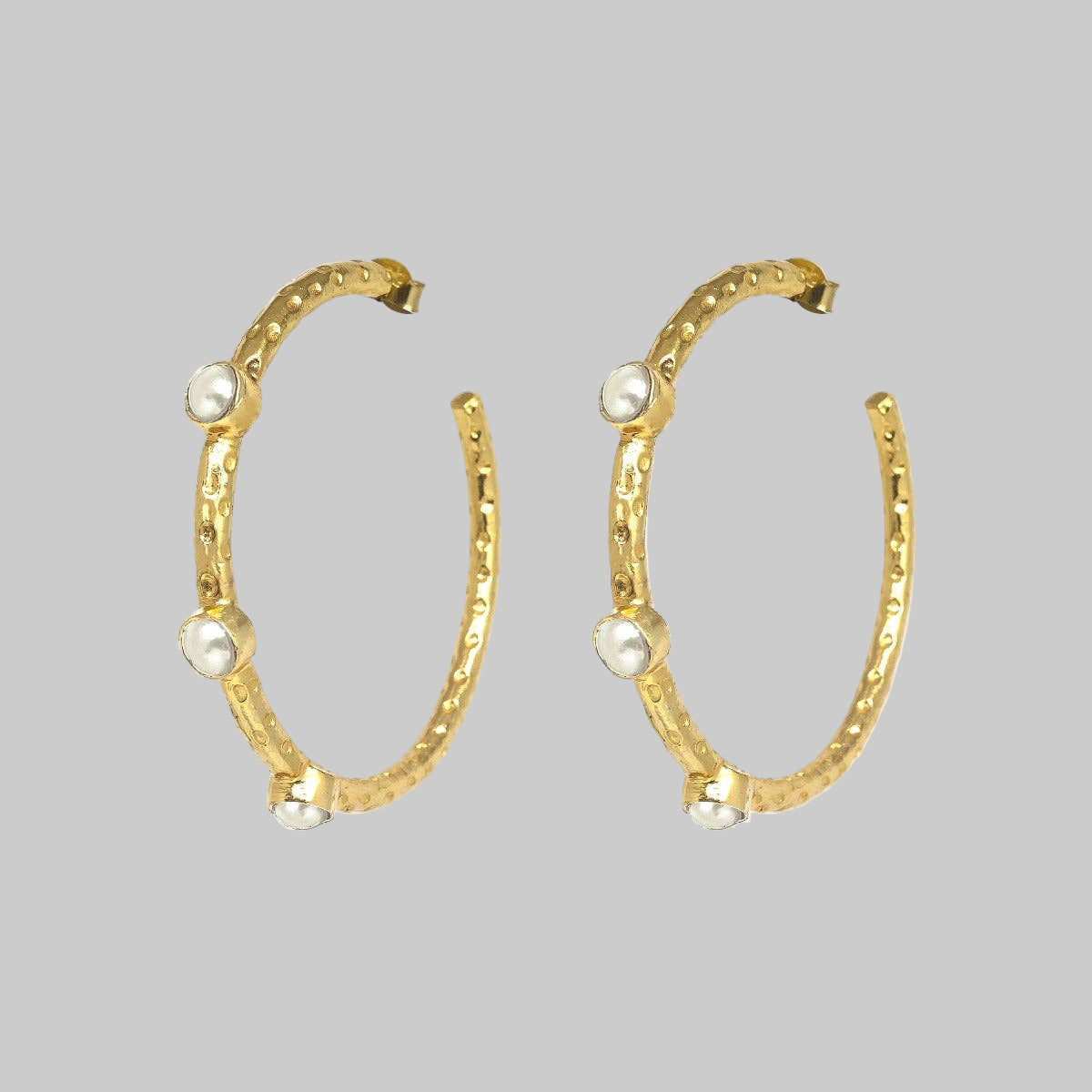 Jenny Large Gold Hoop Earrings with Freshwater Pearls