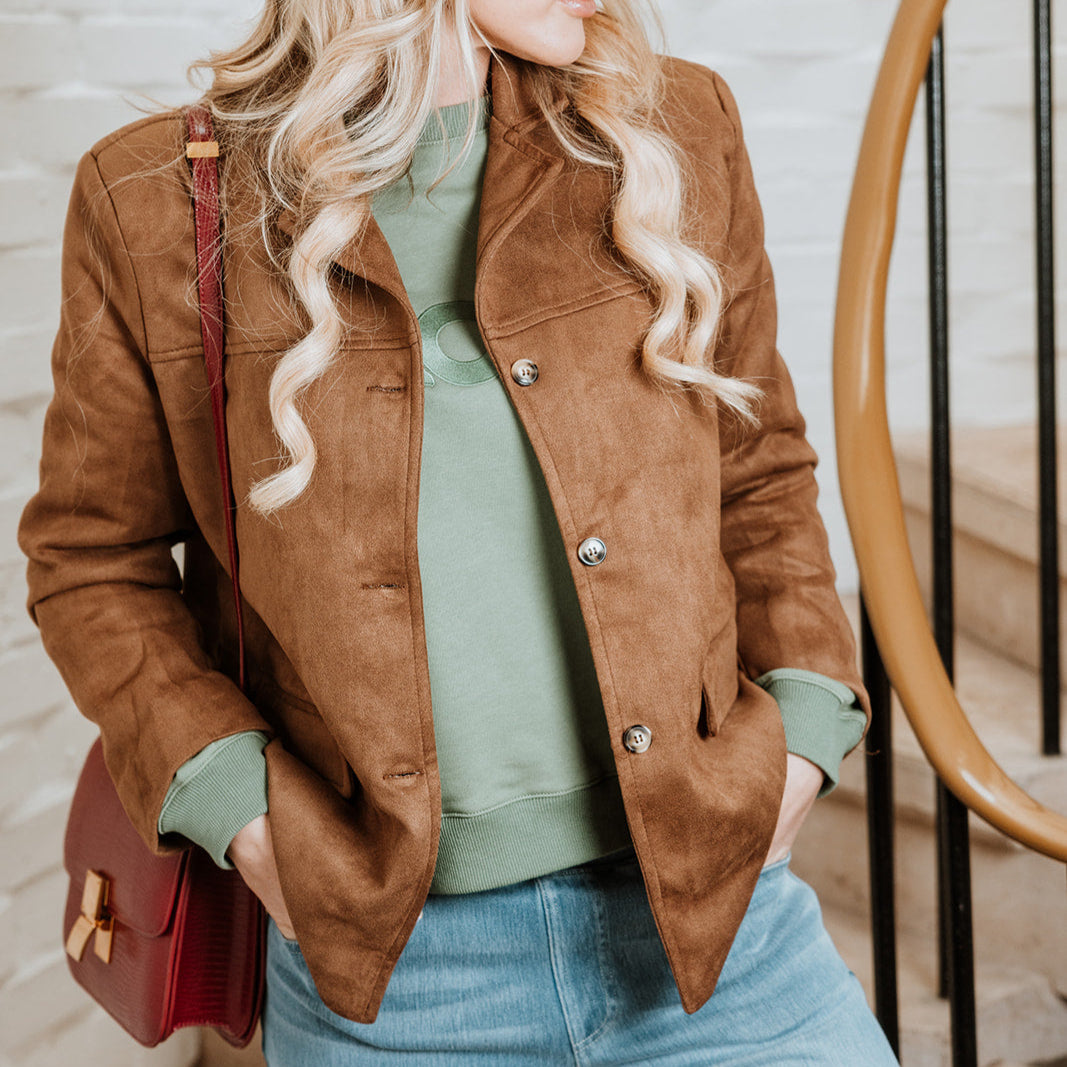 Vana Women’s Vintage Style Faux Suede Jacket | Brown