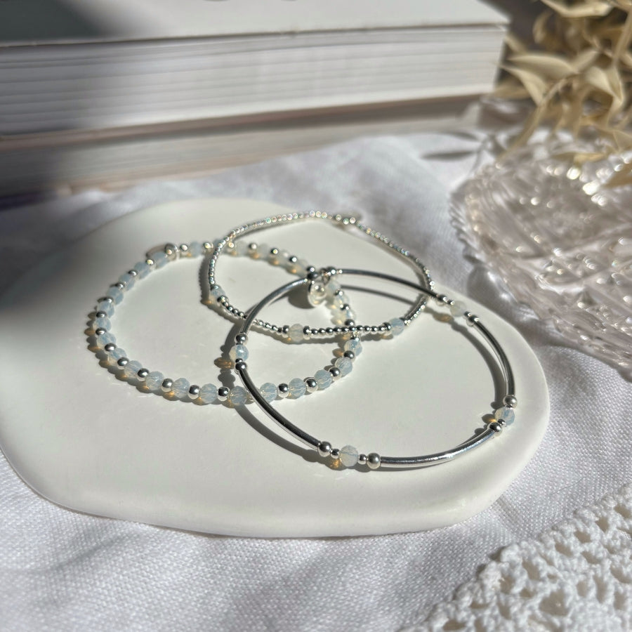 White Gemstone Bracelet Stack – Set of 3 – Sterling Silver & Gold Filled