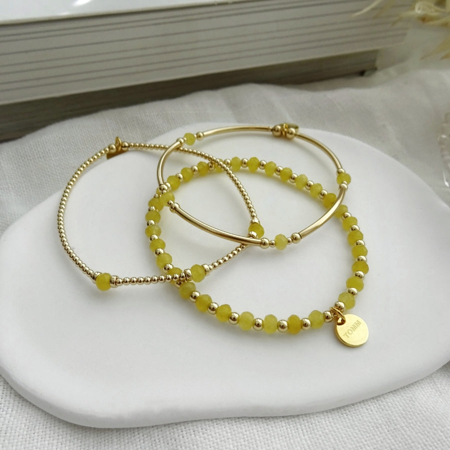 Yellow Gemstone Bracelet Stack – Set of 3 – Sterling Silver & Gold Filled