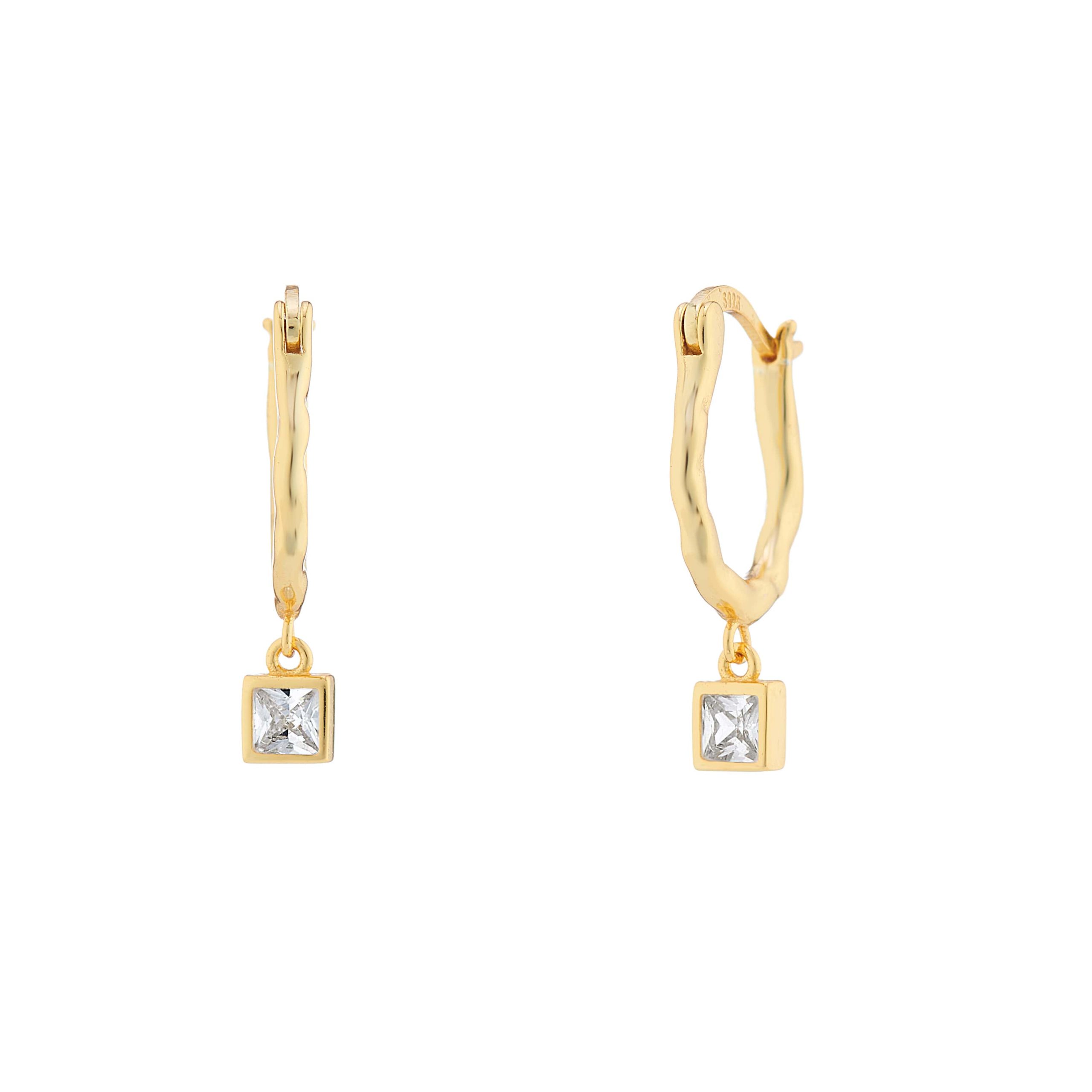 Crystal Oval Hammered Hoop Earrings with Square Charm