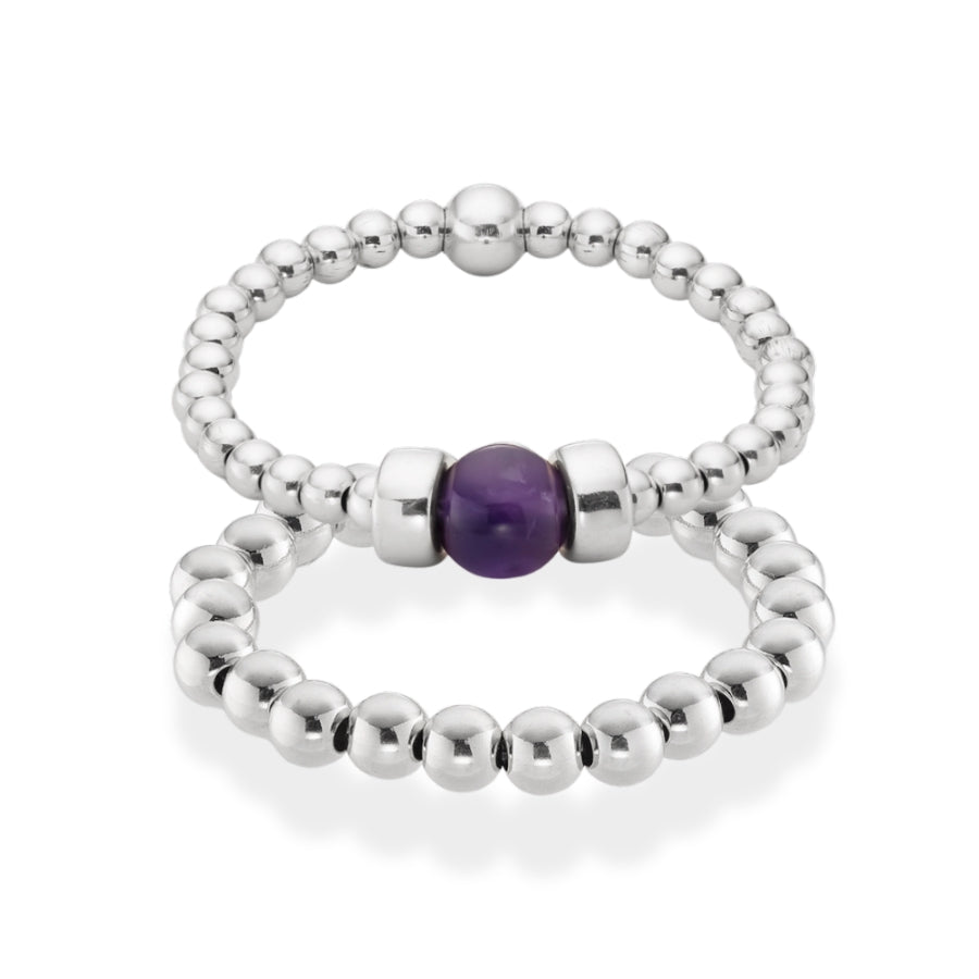 Dainty Amethyst Beaded Ring Stack